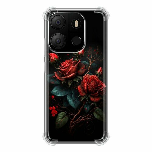 Дизайнерский силиконовый с усиленными углами чехол для Текно Поп 7 / Tecno Pop 7 Розы красные