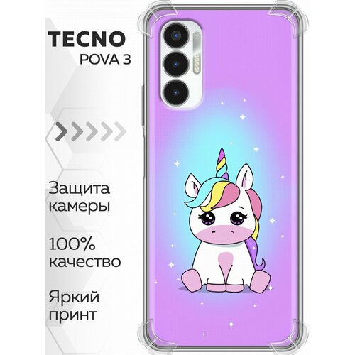 Чехол для Tecno Pova 3 с принтом Розовый единорог (Техно Пова 3)