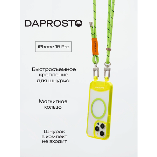 Чехол прозрачный для iPhone 15 PRO с магсейф, съемное крепление для шнурка из TPU JUICY LIGHT GREEN DAPROSTO (без шнурка)