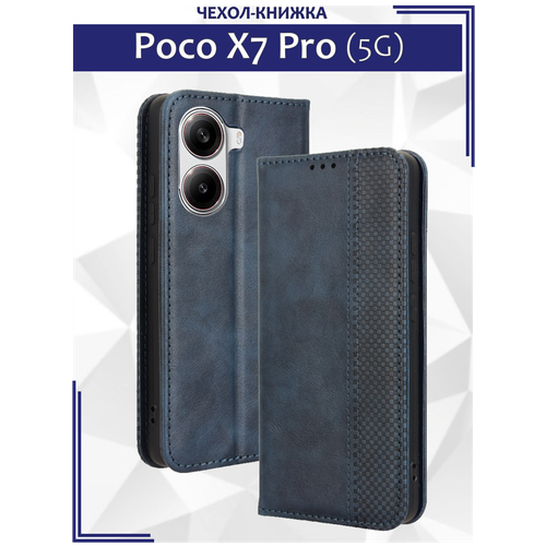 Чехол книжка для Poco X7 Pro (5G) с магнитом и отделением под карты / Поко Х7 Про (синяя)