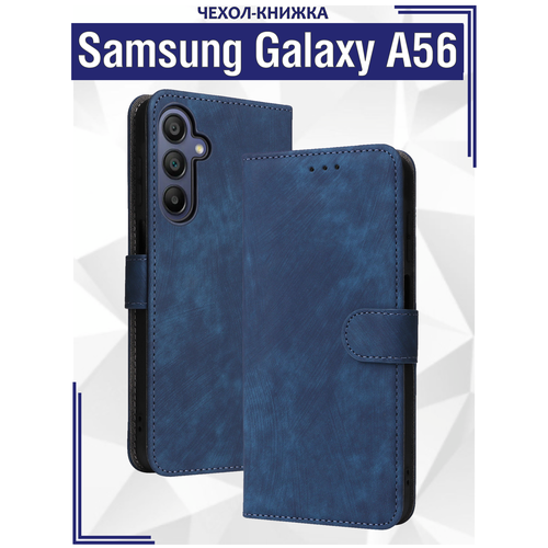 Чехол книжка для Samsung Galaxy A56 c магнитной застежкой / Самсунг Галакси А56 c отделением под карты (синяя)