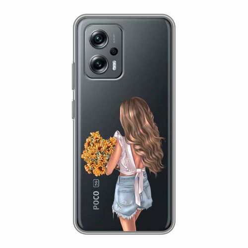 Полупрозрачный дизайнерский силиконовый чехол для Сяоми Поко Х4 ЖТ / Xiaomi Poco X4 GT Девушка с букетом