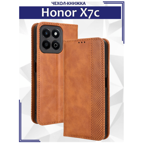 Чехол книжка для Honor X7C с магнитом и отделением под карты / Хонор X7C (коричневая)