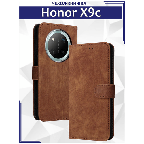 Чехол книжка для Honor X9c c магнитной застежкой / Хонор Х9с c отделением под карты (коричневая)