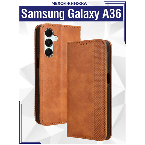 Чехол книжка для Samsung Galaxy A36 с магнитом и отделением под карты / Самсунг Галакси А36 (коричневая)