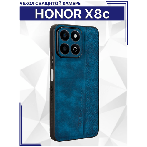 Чехол для Honor X8c кожаный с тиснением / Хонор Х8с с защитой камеры (синяя)