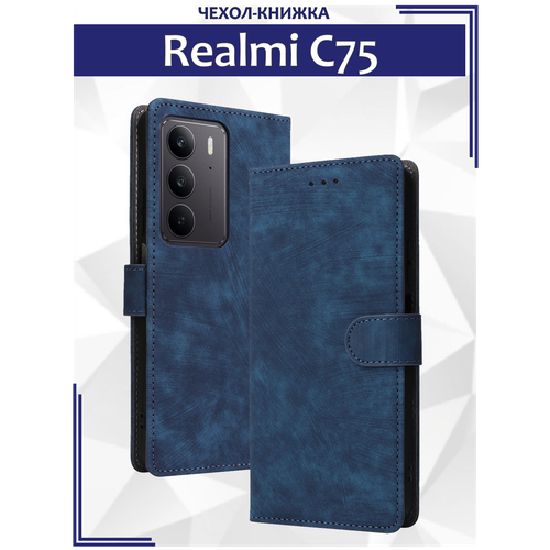 Чехол книжка для Realme C75 (4G) c магнитной застежкой / Реалми С75 c отделением под карты (синяя)
