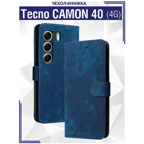 Чехол книжка для Tecno Camon 40 c магнитной застежкой / Техно Камон 40 c отделением под карты (синяя)