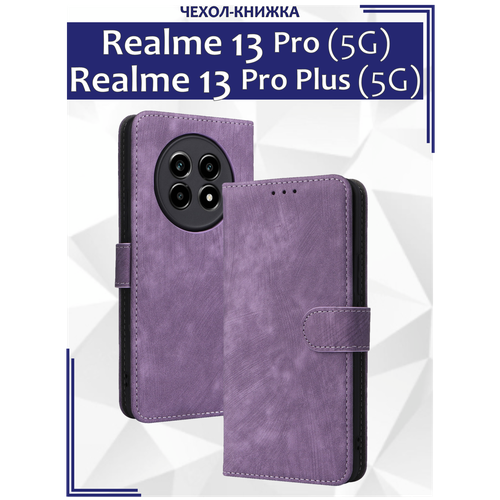 Чехол книжка для Realme 13 Pro (5G)/ Realme 13 Pro Plus c магнитной застежкой / Реалми 13 Про и 13 Про + c отделением под карты (фиолетовая)