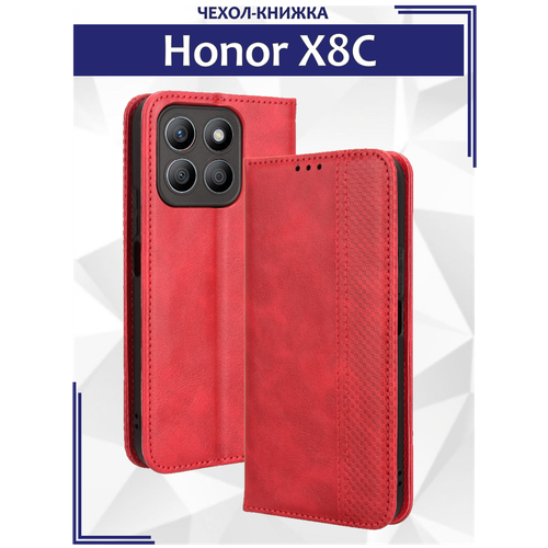 Чехол книжка для Honor X8c с магнитом и отделением под карты / Хонор Х8с (красная)