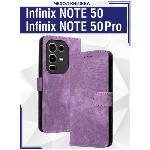 Чехол книжка для Infinix Note 50 (4G)/ Note 50 Pro (4G) c магнитной застежкой / Инфиникс Нот 50, Нот 50 Про c отделением под карты (фиолетовая)