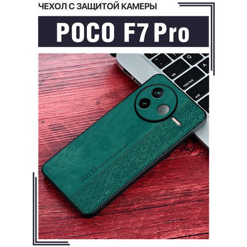 Чехол для Poco F7 Pro кожаный с тиснением / Поко Ф7 Про с защитой камеры (зеленая)