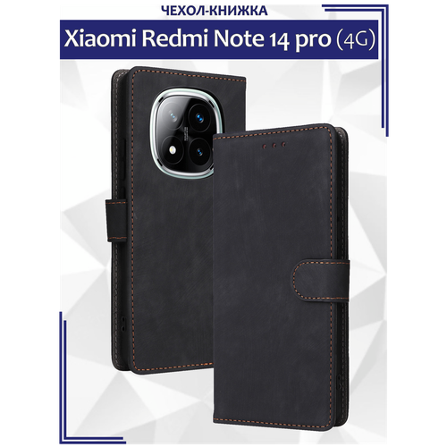 Чехол книжка для Xiaomi Redmi Note 14 Pro (4G) c магнитной застежкой / Сяоми Редми Ноут 14 Про 4G c отделением под карты (черная)