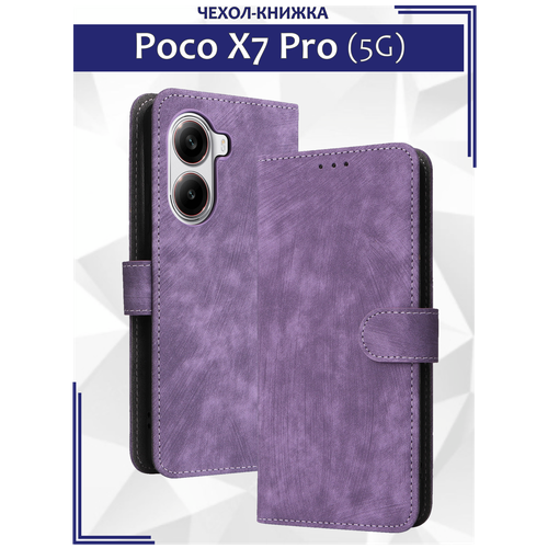 Чехол книжка для Poco X7 Pro (5G) c магнитной застежкой / Поко Х7 Про c отделением под карты (фиолетовая)