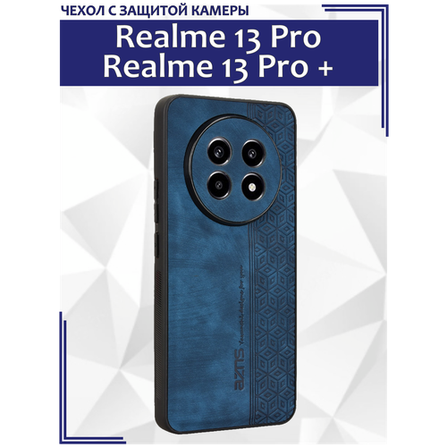 Чехол для Realme 13 Pro (5G)/ Realme 13 Pro Plus кожаный с тиснением / Реалми 13 Про и 13 Про + с защитой камеры (синяя)