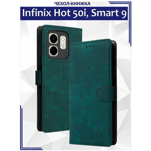 Чехол книжка для Infinix Hot 50i, Smart 9 c магнитной застежкой / Хот 50i, Смарт 9 c отделением под карты (зеленая)