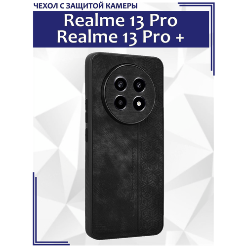 Чехол для Realme 13 Pro (5G)/ Realme 13 Pro Plus кожаный с тиснением / Реалми 13 Про и 13 Про + с защитой камеры (черная)