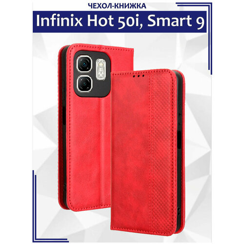 Чехол книжка для Infinix Hot 50i, Smart 9 с магнитом и отделением под карты / Хот 50i, Смарт 9 (красная)