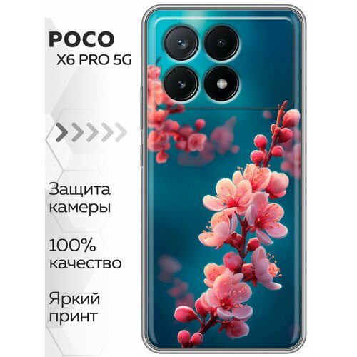Чехол для Xiaomi Poco X6 Pro 5G с принтом Женский принт цветы (Сяоми Поко Х6 Про 5G)