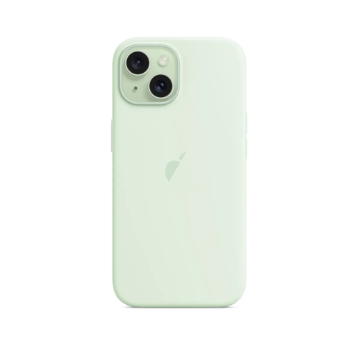 Чехол силиконовый Магсейф для iPhone 15 Plus Soft Mint с анимацией NFC, Silicone case Магсейф для айфон 15 Плюс - Мятный