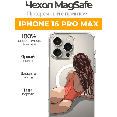 Чехол на Айфон 16 Про Макс (Apple iPhone 16 Pro Max) MagSafe с магнитом и принтом Девушка на пляже