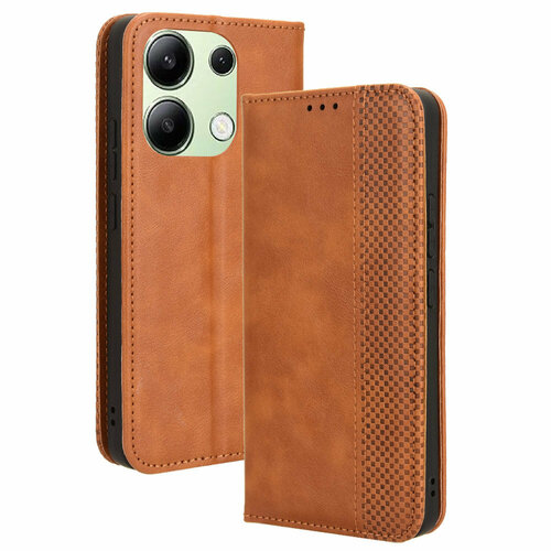 Чехол книжка для Xiaomi Redmi Note 13 (4G) с магнитом и отделением под карты / Редми Нот 13 4G (коричневая)
