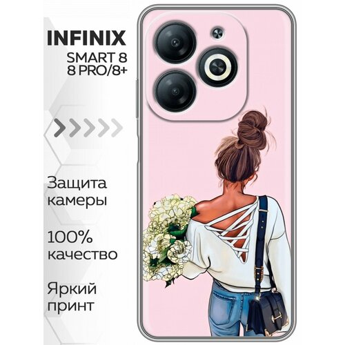 Чехол для Infinix Smart 8, 8 Plus, 8 Pro Девушка и букет (Инфиникс Смарт 8, 8 плюс, 8 Про)
