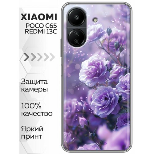 Чехол для Xiaomi Redmi 13C 4G 5G, Poco C65 4G с принтом Цветы сиреневые розы (Сяоми Редми 13С 4G 5G, Поко С65 4G)