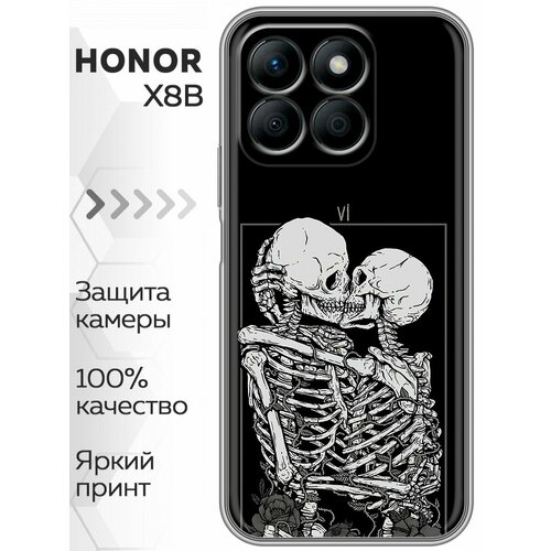 Чехол для Honor X8b с принтом Поцелуй скелетов (Хонор Х8б)