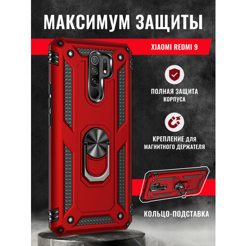 Чехол на Xiaomi Redmi 9 противоударный защитный бампер с кольцом-подставкой на Редми 9