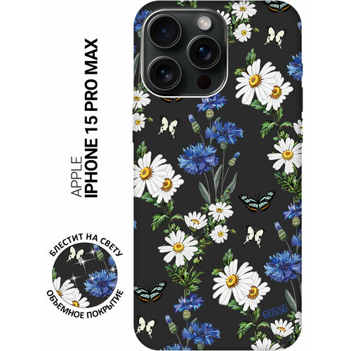 Силиконовый чехол на Apple iPhone 15 Pro Max / Эпл Айфон 15 Про Макс с рисунком "Hello, Camomiles" Soft Touch черный