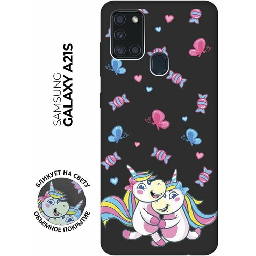 Матовый чехол Unicorns and Candies для Samsung Galaxy A21s / Самсунг А21с с 3D эффектом черный
