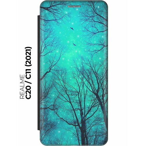 Чехол-книжка Голубое небо в ветках на realme C20 / C11 (2021) / Рилми С20 / С11 (2021) черный
