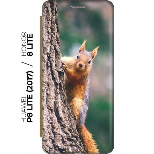 Чехол-книжка Белочка на Honor 8 Lite / Huawei P8 Lite (2017) / Хонор 8 Лайт / Хуавей Р8 Лайт 2017 золотой