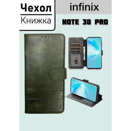 Чехол книжка для Infinix Note 30 Pro с магнитом и отделением под карты Инфиникс Нот 30 Про зелёный