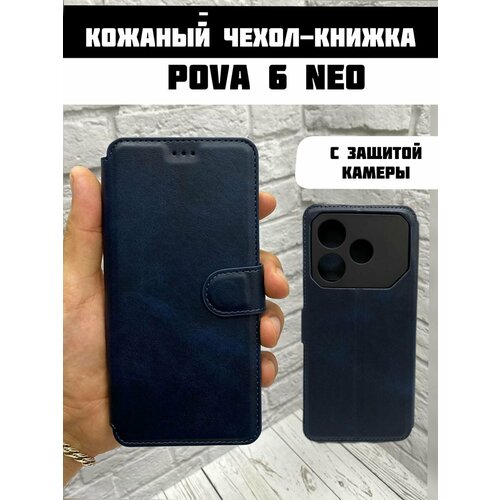 Кожаный Чехол-книжка на Tecno Pova 6 Neo Текно Пова 6 Нео синий эко-кожа