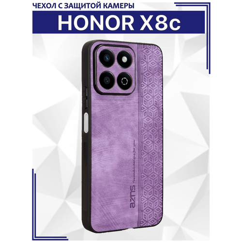 Чехол для Honor X8c кожаный с тиснением / Хонор Х8с с защитой камеры (фиолетовая)