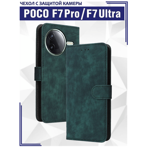 Чехол книжка для Poco F7 Pro/ Poco F7 Ultra c магнитной застежкой / Поко Ф7 Про, Ф7 Ультра c отделением под карты (зеленая)