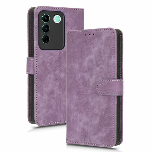 Чехол книжка для Vivo V27E c магнитной застежкой / Виво В27Е c отделением под карты (фиолетовая)