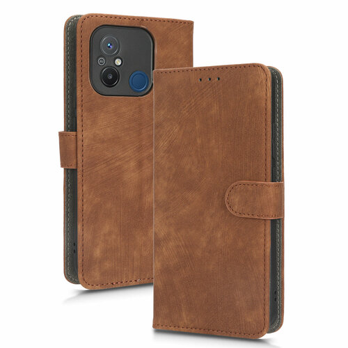 Чехол книжка для Xiaomi Redmi 12C c магнитной застежкой / Сяоми Редми 12Си c отделением под карты (коричневая)