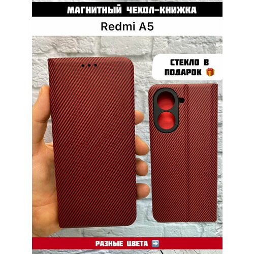 Чехол-книжка "Карбон", для Redmi A5/Poco C71, экокожа, защита камеры