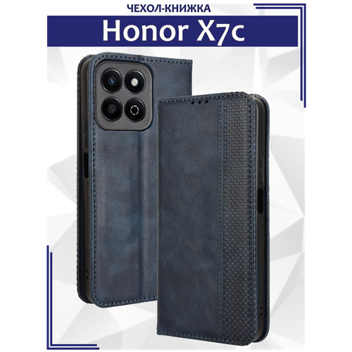 Чехол книжка для Honor X7C с магнитом и отделением под карты / Хонор X7C (синяя)