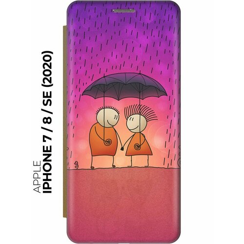 Чехол-книжка Парочка под дождем на Apple iPhone SE (2022) / SE (2020) / 8 / 7 / Эпл Айфон СЕ 2022 / СЕ 2020 / 8 / 7 золотой