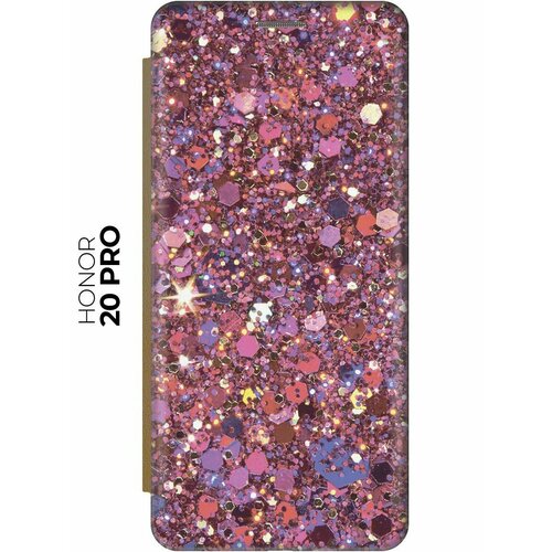 Чехол-книжка Розовые пайетки на Honor 20 Pro / Хонор 20 Про золотой