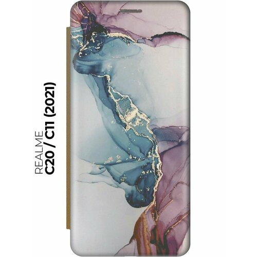 Чехол-книжка Сине-розовый мрамор на realme C20 / C11 (2021) / Рилми С20 / С11 (2021) золотой