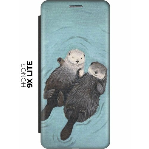Чехол-книжка Выдры на голубом на Honor 9X Lite / Хонор 9Х Лайт черный