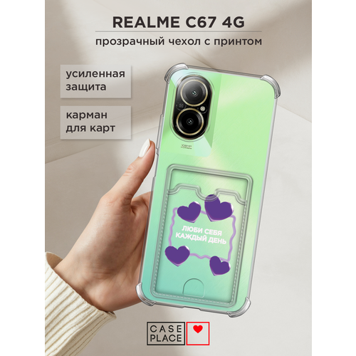 Чехол на Realme C67 4G (Реалми C67 4G) с картой и принтом Сердечки и надпись Люби себя