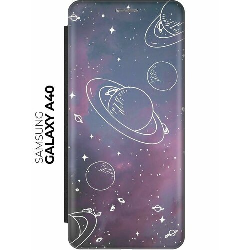 Чехол-книжка Космос на закатном небе на Samsung Galaxy A40 / Самсунг А40 черный