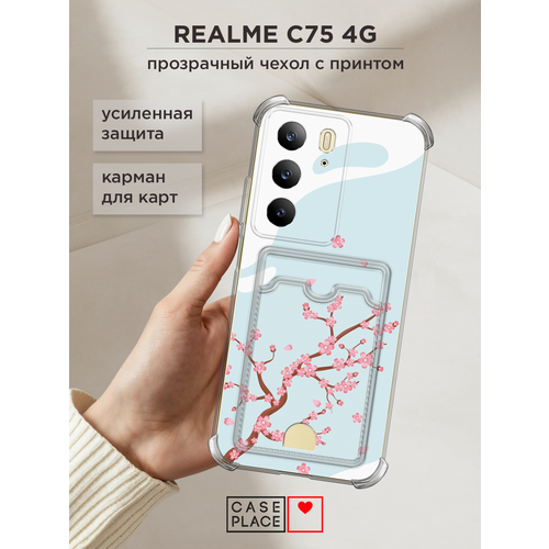 Чехол на Realme C75 4G (Реалми C75 4G) с картой и принтом Цветущая ветка сакуры