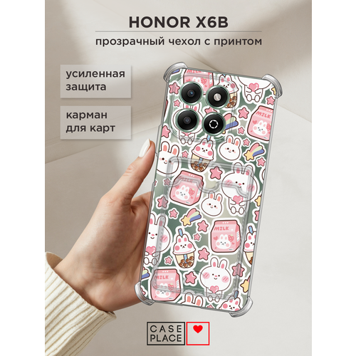 Чехол на Honor X6b (Хонор X6b) с картой и принтом Милый корейский кролик